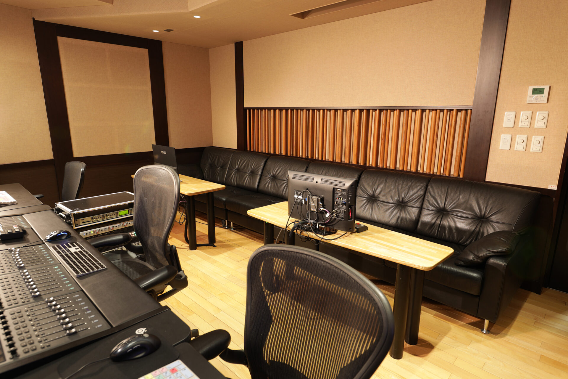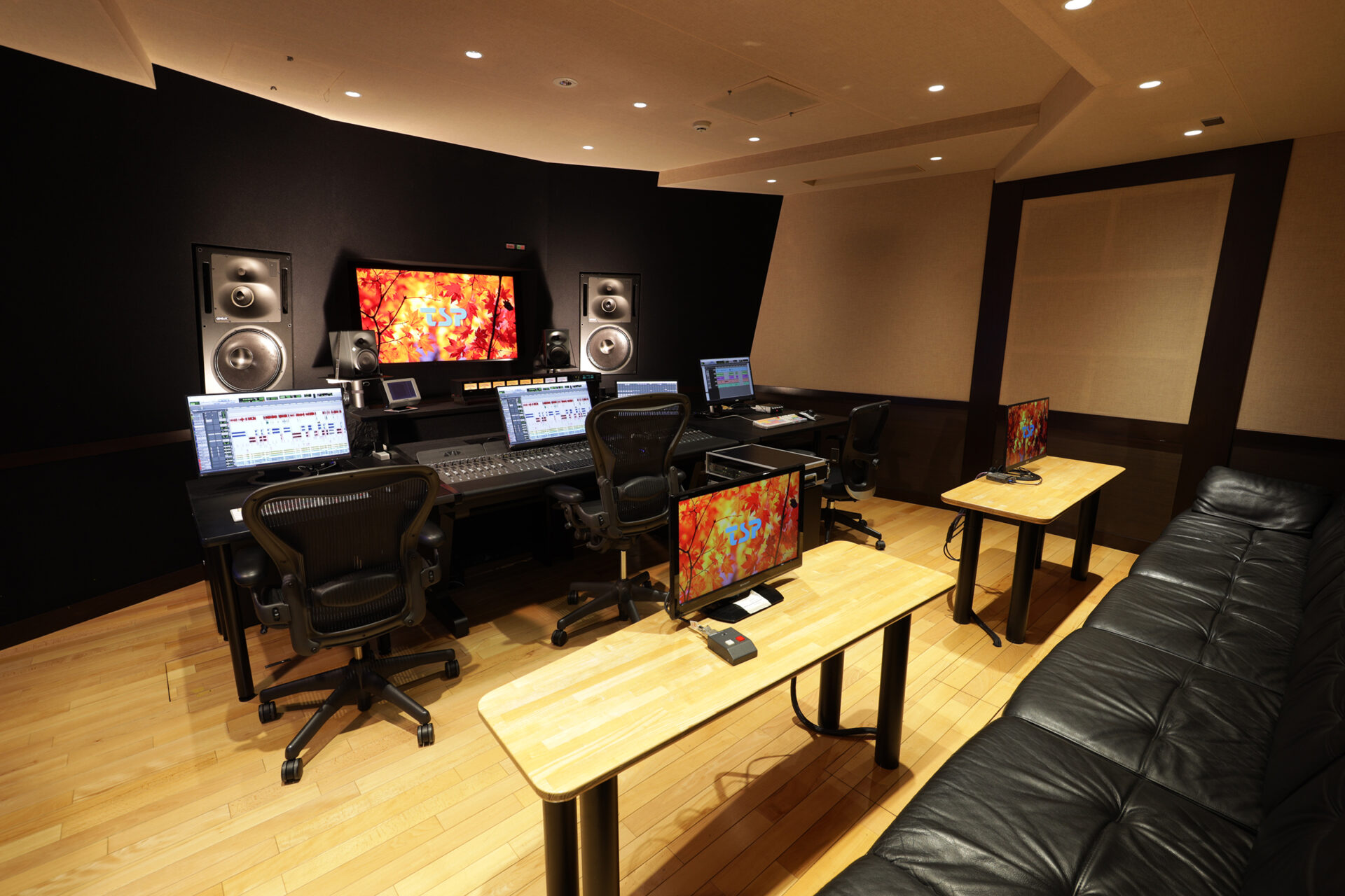 音響拡散システム、大きなクライアントソファを導入し、居心地の良さ、使い勝手の良さ にも配慮。